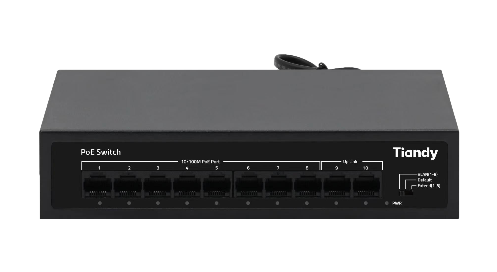 8个百兆PoE口+2个百兆上行网口符合IEEE 802.3、IEEE 802.3u、IEEE802.3x标准PoE总功率70W,单口PoE最高功率30W以太网端口支持10/100M自适应流控方式:全双工采用IEEE 802.3x标准,半双工采用Back pressure标准支持端口自动翻转(Auto MDI/MDIX)采用存储转发的交换机制所有端口支持线速交换零配置特性,自动供给到自适应的设备面板指示灯监控工作状态及帮助故障分析附带三档一键智能拨码开关,支持VLAN、Default、Extend三种模式