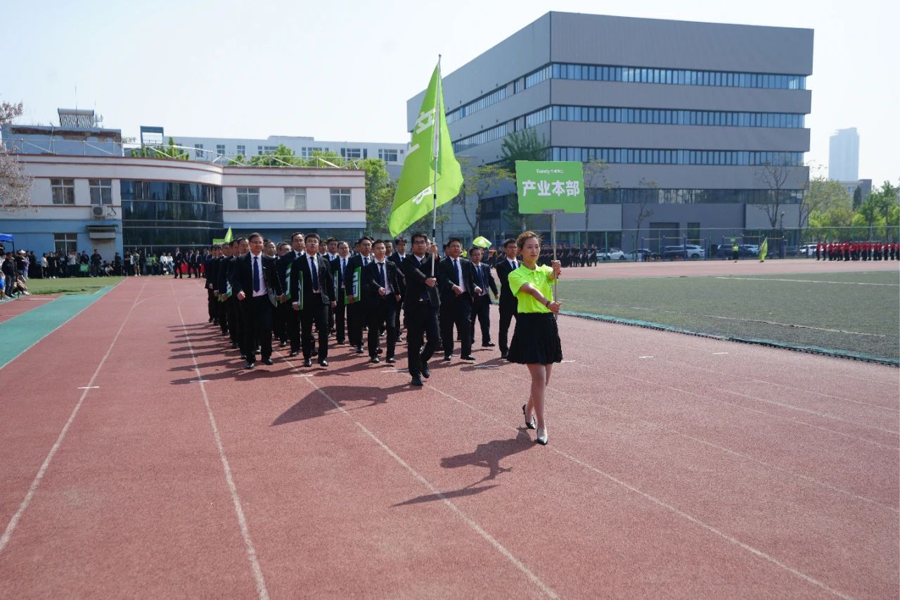 随后五大本部方阵逐一亮相,旗帜猎猎,口号激昂——或列队演绎铁骨铮铮,或舞动青春活力彩带,创意与气势交融,展现着各本部锐不可当、斗志昂扬的风采。
