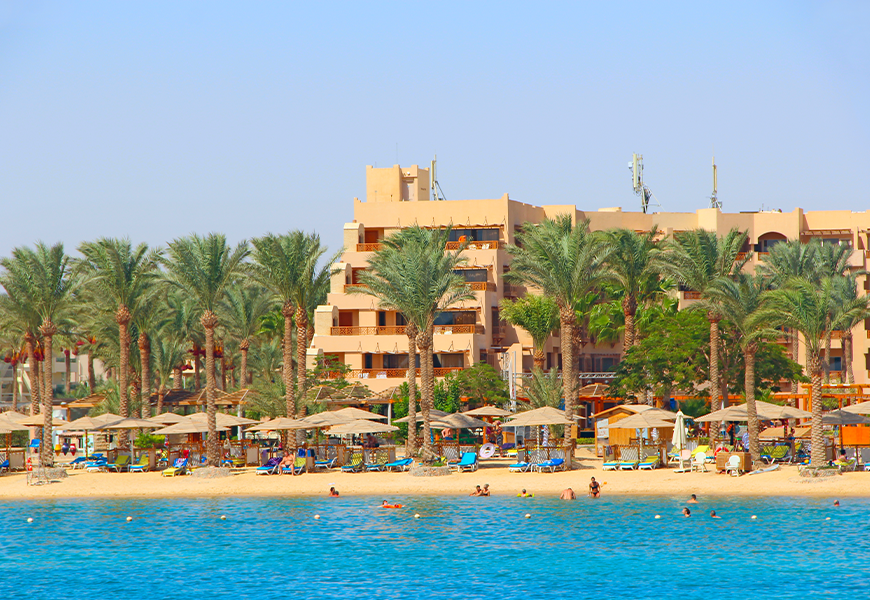 赫尔格达,位于埃及红海省,是埃及最著名的度假胜地之一。与之相伴的红海,灿烂的阳光,细软的沙滩,翠绿的椰枣树,墨蓝色的海水,得天独厚的旅游资源每年吸引着数百万世界各
